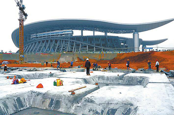 廣西體育中心防水施工現(xiàn)場(chǎng)