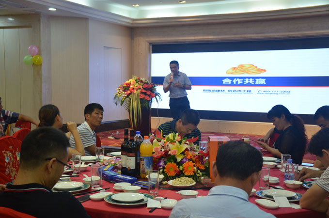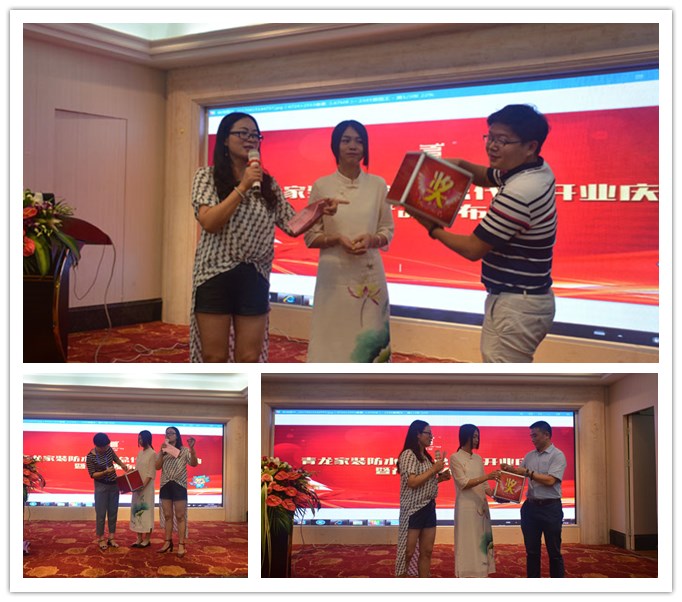 在答謝午宴上,賓客滿席,董老板、青龍營(yíng)銷總監(jiān)賀總、青龍家裝營(yíng)銷于總、青龍質(zhì)量總監(jiān)張總和專賣店技術(shù)工程師周工分別上臺(tái)進(jìn)行了分享。午宴中還穿插了精彩的文藝節(jié)目和豐富的活動(dòng),將現(xiàn)場(chǎng)氛圍推向高潮。廣大來賓在一片歡聲笑語(yǔ)中,不僅學(xué)習(xí)了更多的創(chuàng)業(yè)經(jīng)驗(yàn)和防水知識(shí),也拓展了人際網(wǎng)絡(luò),愉快地度過了這個(gè)美好的正午。