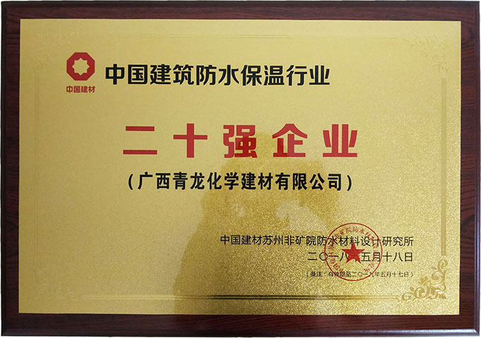青龍榮獲"中國(guó)建筑防水保溫二十強(qiáng)企業(yè)"稱號(hào)