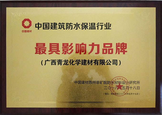 青龍榮獲"中國(guó)建筑防水保溫最具影響力品牌"稱號(hào)