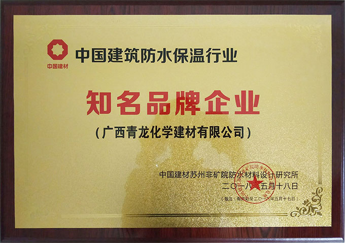 青龍榮獲"中國(guó)建筑防水保溫知名品牌企業(yè)"稱號(hào)