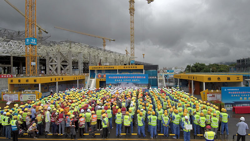 "分秒必爭,決勝坪山",2018年8月10日早上9點(diǎn),深圳坪山高新區(qū)綜合服務(wù)中心項(xiàng)目誓師大會現(xiàn)場,宣誓聲異口同聲、響徹云霄,似乎為即將成為坪山新地標(biāo)而摩拳擦掌。由青龍公司GRC團(tuán)隊(duì)等13個(gè)承建單位組成的1000多人方陣,堅(jiān)定表達(dá)了圓滿完成目標(biāo)的信心和決心。