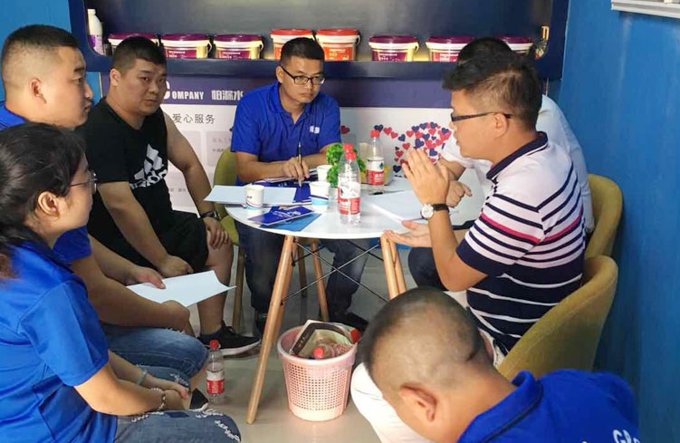 開業(yè)期間,周總還特別組織召開了青龍家裝防水補(bǔ)漏新產(chǎn)品發(fā)布會。青龍賀總近距離與大家分析、把脈防水堵漏領(lǐng)域現(xiàn)狀,并就近年防水市場新機(jī)遇、新產(chǎn)品、新技術(shù)、新理念進(jìn)行了分享。他強(qiáng)調(diào),2018年是進(jìn)入建筑修繕堵漏領(lǐng)域最好的時機(jī),先進(jìn)入將獲得更多的優(yōu)勢,然后,簡單介紹青龍?zhí)厣S修堵漏產(chǎn)品的優(yōu)勢,為大家指明了方向,也增強(qiáng)了大家做建筑修繕的信心。