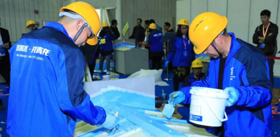 此次比賽的主要項目有:項目一,斜屋面模型防水施工。斜屋面模型包含采光井天窗、排氣管道、陰陽角、排水溝、落水口等防水部位,系統(tǒng)展示了斜屋面、彩鋼瓦、伸縮縫等環(huán)節(jié)。