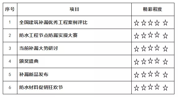 大賽上,來自全國的防水師傅、技術(shù)人員或老板,聚集一堂,防水師傅參加建筑節(jié)點(diǎn)防漏實(shí)操大賽,技術(shù)人員或老板分享優(yōu)秀補(bǔ)漏工程案例,并能聆聽成功人士的經(jīng)驗(yàn)和專家點(diǎn)評,有助于你總結(jié)他人的經(jīng)驗(yàn),更好地結(jié)合個(gè)人實(shí)際情況,開創(chuàng)屬于自己的事業(yè)。