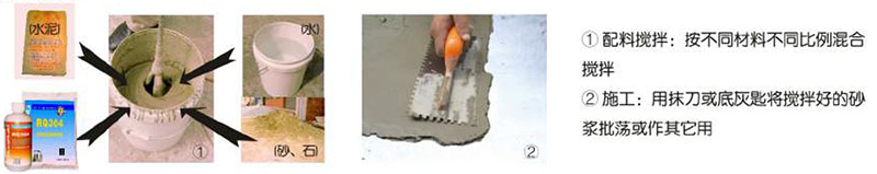 3、配制混凝土或砂漿時,將砂、石、水泥及水在攪拌機中先直接攪拌,再加 對應比例的防水劑繼續(xù)攪拌均勻即可;