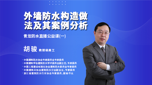 胡駿教授是資深的防水行業(yè)知名專家,他不僅擁有扎實的專業(yè)能力,并且都親身參與過多起國內(nèi)重點防水工程,實戰(zhàn)能力過硬。今晚他將為大家?guī)?外墻防水構(gòu)造做法及其案例分析"的課題,從外墻構(gòu)造形式、外墻防水構(gòu)造做法等最基本的防水知識入手,幫助大家詳細了解外墻防水原理、使用材料和施工細節(jié),最后以具體的案例分析介紹其中的成功得失,幫助我們在以后的防水補漏工程中規(guī)避那些不規(guī)范的做法。