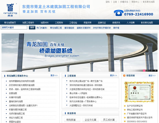 經(jīng)過精心的策劃和籌備,東莞市青龍土木建筑加固工程有限公司(www.dgqinglong.com)網(wǎng)站現(xiàn)已正式上線,并進(jìn)入運(yùn)行階段。 網(wǎng)站以簡(jiǎn)約風(fēng)格為主調(diào),色彩與公司風(fēng)格保持一致。網(wǎng)站內(nèi)容豐富、結(jié)構(gòu)清晰。簡(jiǎn)潔的瀏覽體驗(yàn)可使您快速獲得想要的信息。完善客戶服務(wù),提供優(yōu)質(zhì)在線服務(wù),我們期待您的關(guān)注參與和支持!