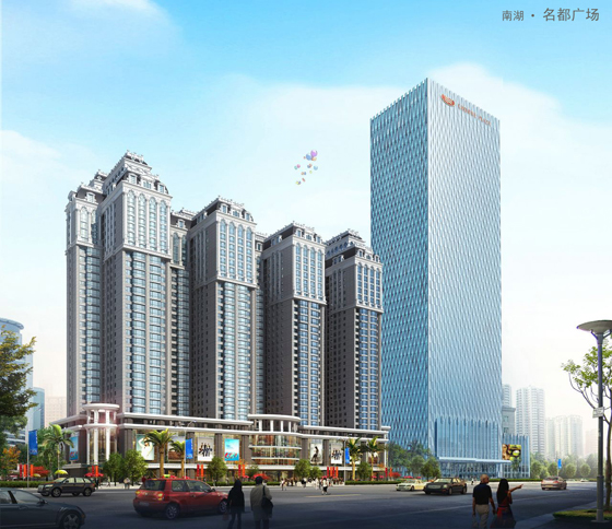 南湖名都廣場是南寧港昌房地產有限公司投資興建的高層建筑綜合體,集住宅、商業(yè)、寫字樓、酒店為一體,總建筑面積約為30.5萬平方米。項目分為兩個部分,其中A座為皇冠假日酒店和高檔寫字樓,其建筑外立面為水波幕墻設計,由數以千計的雙層中空low-e幕墻純手工拼接而成。水波幕墻具有減少光污染的作用,它利用光漫反射原理裝成,在滿足樓宇采光的同時,極大地降低了光污染,更加環(huán)保從而降低能耗。