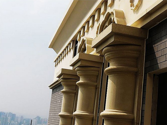 青龍(集團)公司集產品開發(fā)、生產、建筑藝術裝飾于一體,近年來,憑借著雄厚的技術力量、齊全的生產設備,公司生產出包括飾線、羅馬柱、窗套、檐花、欄河花瓶、浮雕等一系列極盡裝飾美感的水泥外墻裝飾產品,被廣泛地應用在各種高檔樓盤當中,成為了它們不可缺少的伴侶。
