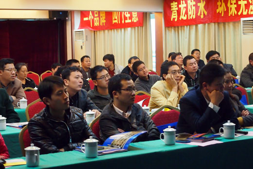 一個品牌,四門生意”的招商加盟政策,他分析了青龍公司從事的防水、保溫、加固、GRC歐式構(gòu)件行業(yè)的發(fā)展前景、行業(yè)現(xiàn)狀,并且從現(xiàn)有的加盟代理商的致富經(jīng)驗出發(fā),詳細(xì)地介紹了青龍公司的招商加盟計劃。他的講解受到了在場觀眾的熱捧,他們紛紛表示會認(rèn)真考慮跟青龍公司的合作。
