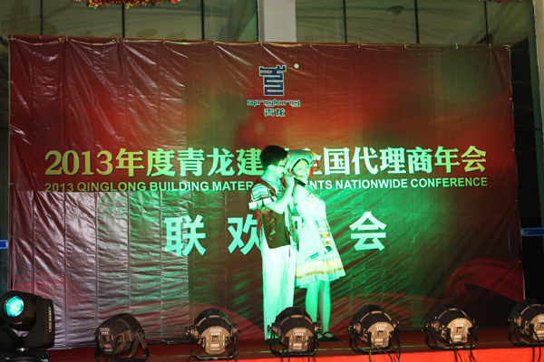 2014年1月7日,由青龍集團(tuán)舉辦的“整合,分享,共贏”2013年度青龍建材全國(guó)代理商在廣西南寧隆重召開(kāi),來(lái)自全國(guó)各地150余人青龍代理商和意向客戶(hù),齊聚一堂,共享紅色財(cái)富,共贏廣闊未來(lái)。在開(kāi)完白天的年會(huì)之后,晚上,青龍集團(tuán)為代理商朋友舉辦了盛大的晚宴。晚宴期間青龍員工編排了豐富多樣,生動(dòng)活潑的文藝匯演,讓代理商朋友們不僅嘆服于青龍化學(xué)建材強(qiáng)大的品牌加盟政策,也折服于青龍優(yōu)秀的企業(yè)文化。