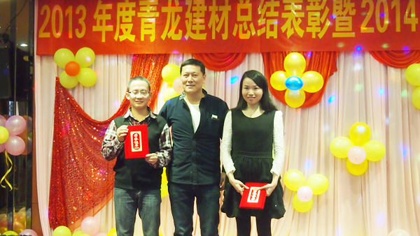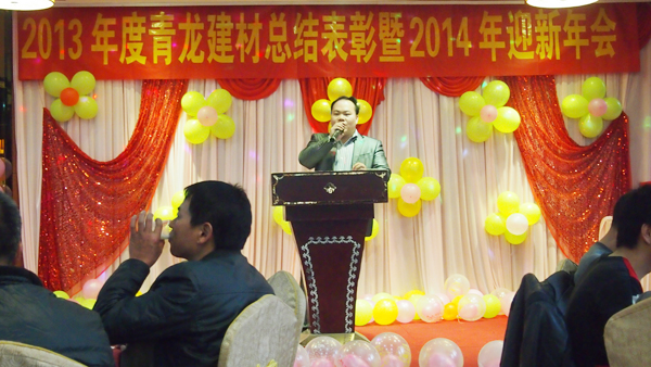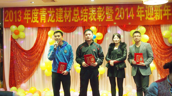 晚宴上,青龍廣西分公司韋流武先生代表集團(tuán)董事長(zhǎng)宋總致晚宴開幕辭并送上新年祝福。韋經(jīng)理總結(jié)了2013年青龍廣西化學(xué)建材的發(fā)展歷程,肯定了2013年所取得的成績(jī),并對(duì)2014年寄予了美好展望。之后對(duì)2013年青龍廣西化學(xué)建材表現(xiàn)優(yōu)異的員工進(jìn)行表彰,鼓勵(lì)大家向他們學(xué)習(xí),繼續(xù)為生產(chǎn)中國(guó)較好的防水材料而奮斗。
