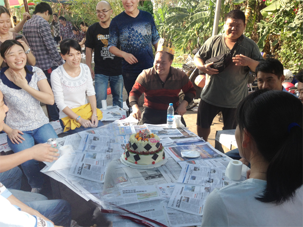 之后大家再次圍坐在一起,一起吟唱生日快樂(lè)歌,為12位同事獻(xiàn)上溫馨的生日祝福,分享他們生日的好運(yùn)。溫馨的場(chǎng)面不僅感動(dòng)了我們自己,也感染了周?chē)礋狒[的朋友。氣氛其樂(lè)融融,大家玩的開(kāi)心極了。