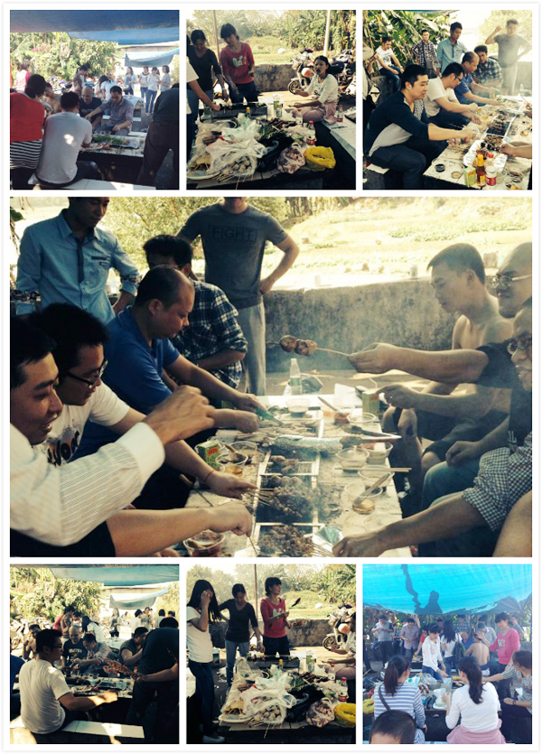 下午12:00,廣西全體員工帶著準(zhǔn)備好的物料和食品來(lái)到悍馬燒烤場(chǎng)。雖然已是秋冬時(shí)節(jié),但天公作美,南寧的天氣依然陽(yáng)光普照,暖暖的,大家做起活動(dòng)來(lái)也分外投入而盡興。的活動(dòng)在韋經(jīng)理的帶領(lǐng)下,大家沿江濱路短跑熱身,很快就把大家的活動(dòng)熱情調(diào)動(dòng)起來(lái)了。其后大家回到悍馬燒烤場(chǎng)進(jìn)行燒拷,大家都興奮地著拿起各自喜愛(ài)的食物,展現(xiàn)自己的燒拷技術(shù)。食品的美味四溢,刺激大家的味覺(jué)神經(jīng),讓大家過(guò)了一把難得的佳肴癮。品味美食之后,大家便進(jìn)行團(tuán)體游戲:踩報(bào)紙游戲比賽、誰(shuí)是臥底游戲、蘿卜蹲游戲。豐富多樣的互動(dòng)游戲,刺激的競(jìng)技比賽,使整個(gè)燒烤場(chǎng)熱鬧非凡,成了一片歡樂(lè)的海洋,也感染了圍觀的人群。