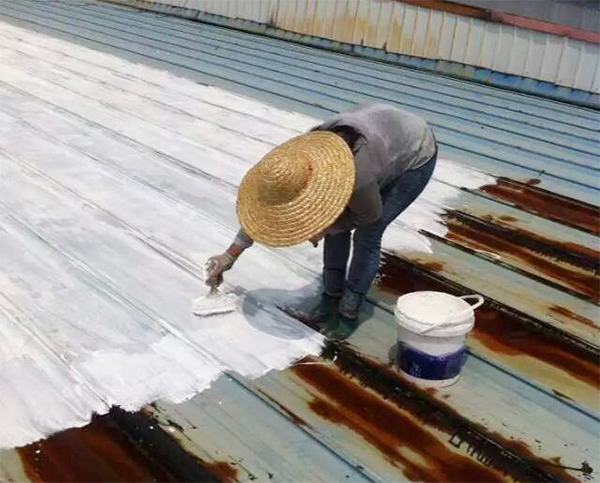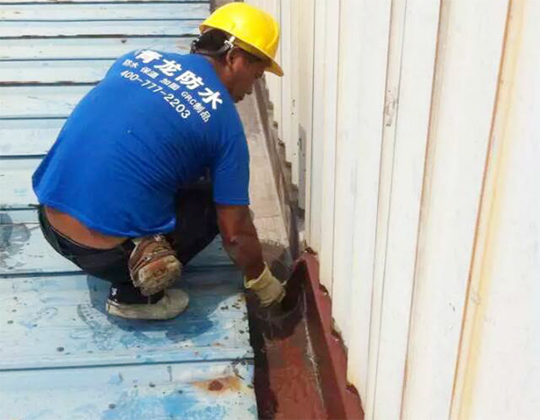 青龍公司中山經(jīng)銷商張總成功承接了這一防水補漏工程。經(jīng)過實地仔細(xì)檢查,并經(jīng)與客戶詳細(xì)協(xié)商,之后敲定采用青龍公司CQ103丙烯酸酯好的彈性防水涂料和CQ104單組份濕固化純聚氨酯防水涂料的組合補漏方案。青龍CQ103丙烯酸酯防水涂料具有良好的耐老化、延伸性、粘結(jié)性、成膜性及耐高溫性,因此非常適合在鐵皮房屋頂作整體涂刷;而屋頂排水溝則采用CQ104單組份濕固化純聚氨酯防水涂料。