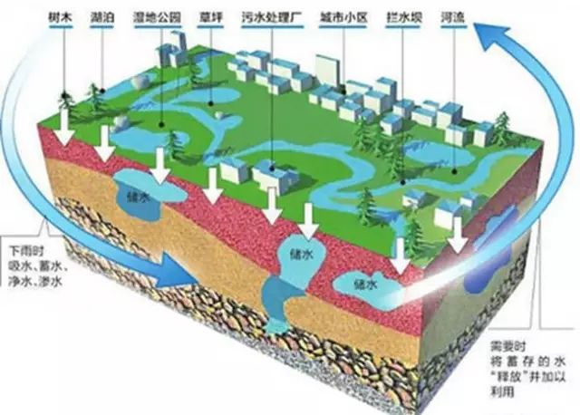 (1)海棉城市,是新一代城市雨洪管理概念,是指城市在適應(yīng)環(huán)境變化和應(yīng)對(duì)雨水帶來(lái)的自然災(zāi)害等方面具有良好的"彈性",也可稱之為"水彈性城市",國(guó)際通用術(shù)語(yǔ)為"低影響開發(fā)雨水系統(tǒng)構(gòu)建"。下雨時(shí)吸水、蓄水、滲水、凈水,需要的時(shí)候?qū)?chǔ)蓄的雨水"釋放"并加以利用。國(guó)務(wù)院辦公廳出臺(tái)"關(guān)于推進(jìn)海綿城市建設(shè)的指導(dǎo)意見"指出,采用滲、滯、蓄、凈、用、排等措施,將70%的降的就地消納和利用。