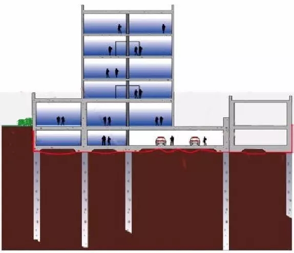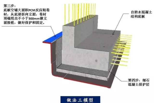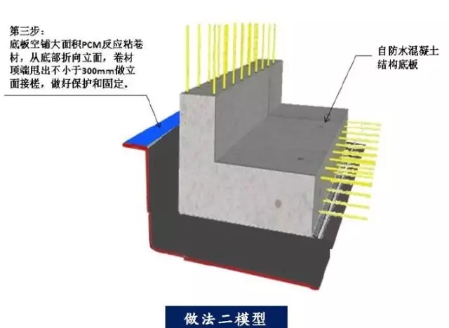 地下室底板防水做法二:防水層反粘于后澆結(jié)構(gòu)底板