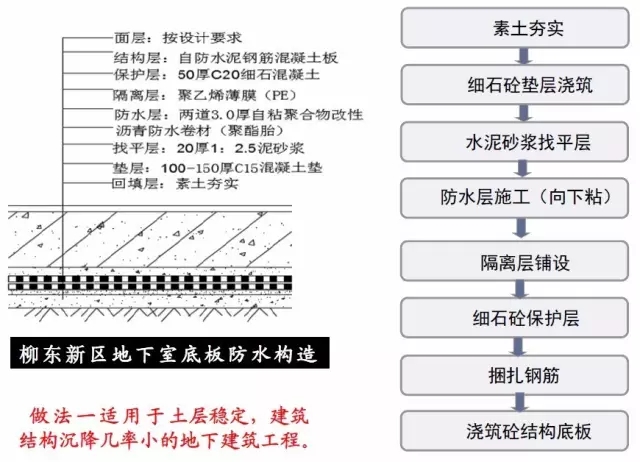 1、細石砼墊層厚度一般不小于100mm,鋼筋砼結(jié)構(gòu)底板厚度一般不小于500mm,防水層反粘于鋼筋砼結(jié)構(gòu)底板更穩(wěn)定、牢固,防水層與鋼筋砼結(jié)構(gòu)沉降一致;