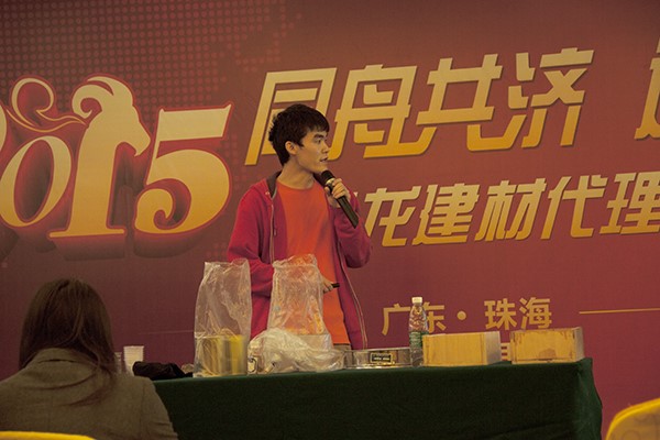 年會(huì)會(huì)議上,青龍防水材料質(zhì)量總監(jiān)張科首先介紹了青龍最新推出的兩款產(chǎn)品:青龍三號(hào)防水透明膠和高滲透環(huán)氧灌漿材料,詳細(xì)分析了其特點(diǎn),優(yōu)勢(shì)和應(yīng)用前景,指出,這兩款新防水材料相比傳統(tǒng)防水材料具有明顯的防水效果,將會(huì)為代理商帶來(lái)新的競(jìng)爭(zhēng)優(yōu)勢(shì),并以實(shí)例演示展現(xiàn)青龍三號(hào)防水透明膠的防水性能。