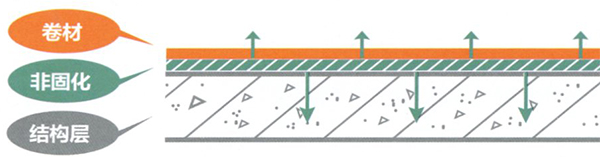 非固化與卷材的復(fù)合做法,主要是將基層進(jìn)行處理,除去水泥浮皮,露出里面的基層;其次,在基層表面進(jìn)行非固化防水涂料的噴涂或者涂膜施工,厚度按照設(shè)計(jì)要求,一般在1.5mm-2mm之間;之后進(jìn)行卷材的鋪粘,并用非固化進(jìn)行搭接處的粘結(jié)?;旧?,所有的關(guān)鍵點(diǎn)在于非固化防水涂料的施工,分涂抹和噴涂施工兩種方法,可利用機(jī)器進(jìn)行施工。