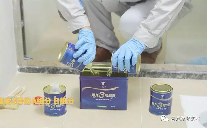 4、青龍3號(hào)調(diào)配,A料:B料=1:1,厚度100~200um,防水膠用量一般在0.1~0.2kg/m2;