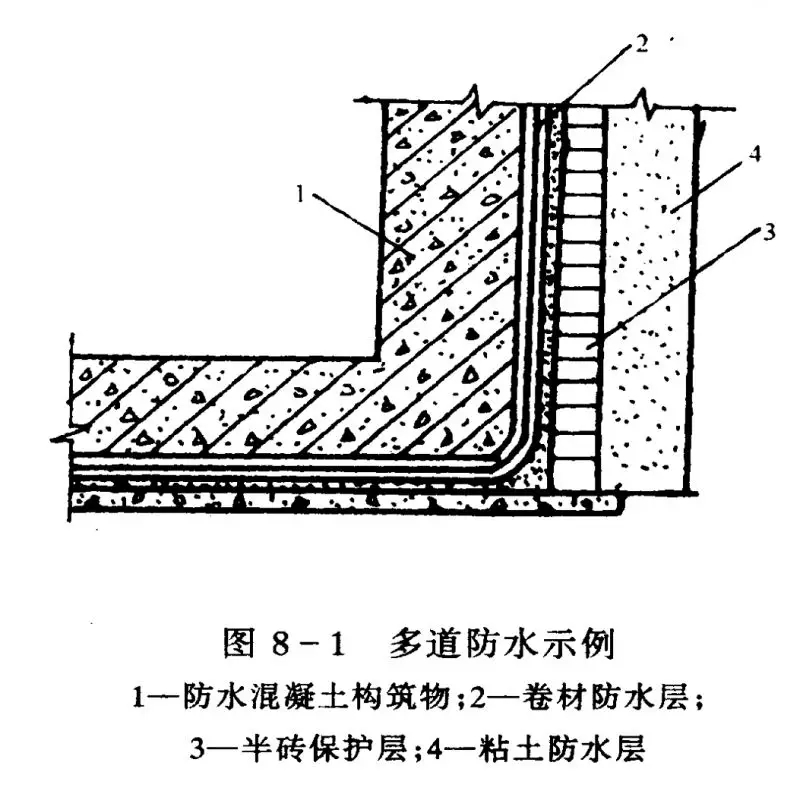 (1) 建筑地下防水一般為砼結(jié)構(gòu)自防水加卷材防水層。地下工程滲漏水的原因主要涉及到材料、設(shè)計(jì)、施工等多方面因素,重點(diǎn)是施工質(zhì)量控制。