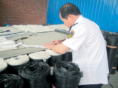 近日,質(zhì)檢總局執(zhí)法督查司根據(jù)全國(guó)建材市場(chǎng)秩序?qū)m?xiàng)整治部際協(xié)調(diào)小組確定的工作重點(diǎn),統(tǒng)一組織指揮河北、遼寧、山東等11省質(zhì)監(jiān)局開(kāi)展了"質(zhì)檢利劍"防水卷材執(zhí)法打假集中行動(dòng),重點(diǎn)打擊制售假冒偽劣、無(wú)證生產(chǎn)防水卷材等違法行為。